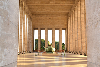 Simboliza a la Nación jurídicamente organizada a partir de la sanción de la Constitución de 1853. En los muros externos se pueden leer frases del Himno Nacional Argentino. En el centro, bajo la Llama Votiva que permanece encendida como homenaje a quienes dan la vida por la Patria, se encuentra la urna con los restos del soldado desconocido, representado en este caso, por uno de los granaderos que participó en el Combate de San Lorenzo en 1813.