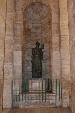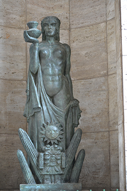En las galerías laterales se encuentran esculturas que representan a la Gran Patria Americana en sus cuatro etapas: América Indígena, América Colonial, América Constitucional y América Futura.