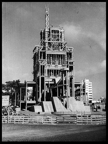 Las obras comenzaron en 1943, un año después de la firma del contrato con los artistas. El Arq. Alejandro Bustillo no participó en la dirección y ejecución de las obras. La construcción tuvo un buen ritmo en los primeros dos años, pero pronto aparecieron problemas con la provisión de materiales que hicieron extender los plazos de finalización. Luego los problemas económicos vuelven a aparecer y la obra continuaría lentamente y gracias al esfuerzo, perseverancia y dedicación de su director y proyectista el Arq. Ángel Guido. La edificación concluyó 14 años después.