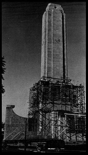 Al comienzo, el plazo de dos años parecía que iba a cumplirse, luego problemas de costo fueron los que provocaron la detención en la marcha de los trabajos. Los sobreprecios provocados por la inflación de aquellos tiempos hicieron que las empresas contratadas para la obra solicitaran reajustes continuos. Se pueden mencionar a empresas como ERCA encargada del hormigón armado; Spirandelli de la parte eléctrica; Taiana, Pasquale & Cía de la albañilería; Capella fue la proveedora del mármol travertino de los Andes. A través de los documentos existentes en el Archivo del Monumento puede hacerse el seguimiento de los trabajos que finalmente concluyeron en 1957.